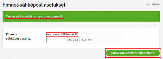 - Tarkista onko sähköpostiosoitteesi haluamasi, mikäli ei ole, klikkaa "Muokkaa sähköpostiosoitetta"